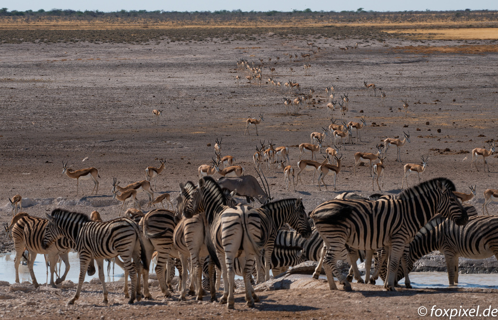 Über das zentrale Hochland geht die Reise in den Norden nach Outjo zum Etosha Nationalpark. 114 verschiedene Tier- und 340 verschiedene Vogelarten sind dort beheimatet, natürlich auch die berühmten "Big-Five". Eine ganztägige Pirschfahrt lässt die Dimensionen der 22 000 Quadratkilometer nur erahnen. Ungewohnt ist die Erfahrung, dass dort die Menschen und nicht die Tiere eingesperrt sind. Die Rückreise über Otjiwarongo und Okahandja führt uns zurück zum Flughafen nach Windhoek. Ein Abstecher über die Townships zeigt auch die Schattenseiten der Armut in diesem wunderbaren Fleck Erde.